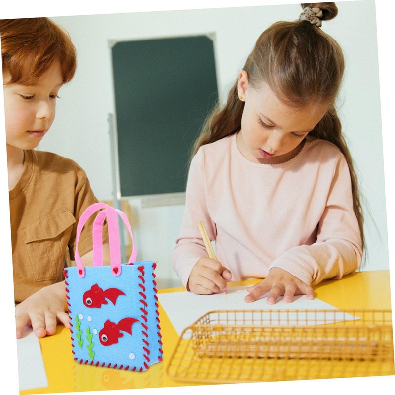 toys for This set can be used as a educational playthings, also can be used as a kindergarten toys.DIY Bag Adornment This small handbag making materials can help children to their hands-on ability.DIY tote bag accessories It is compact in size, and it is convenient for you to carry it.DIY nonwovens cartoon handbags Made by good material, featuring with unique shape, for children use