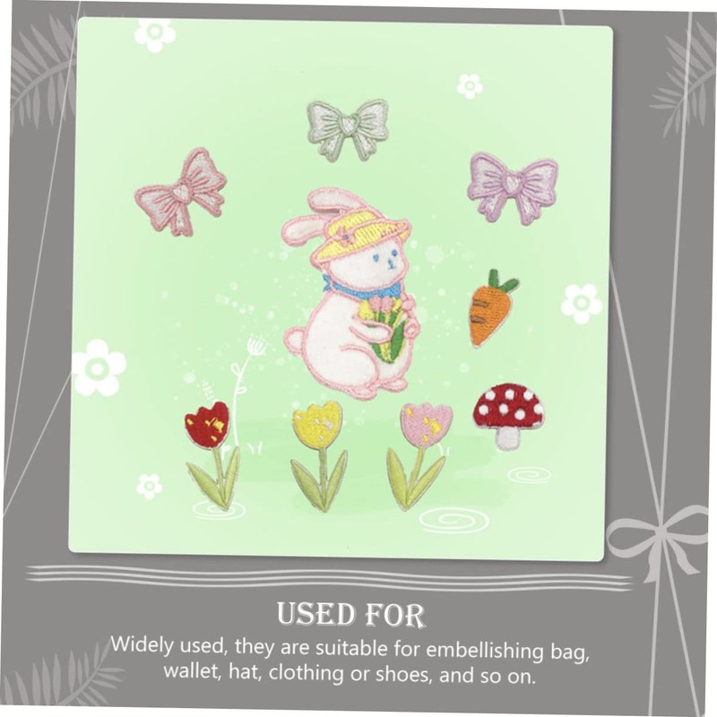 KONTONTY 9Pcs Embroidered Flower Bunny Patches for Clothes DIY Sewing Decor Cute Plush Designs for Costume Accessories and Personal Use