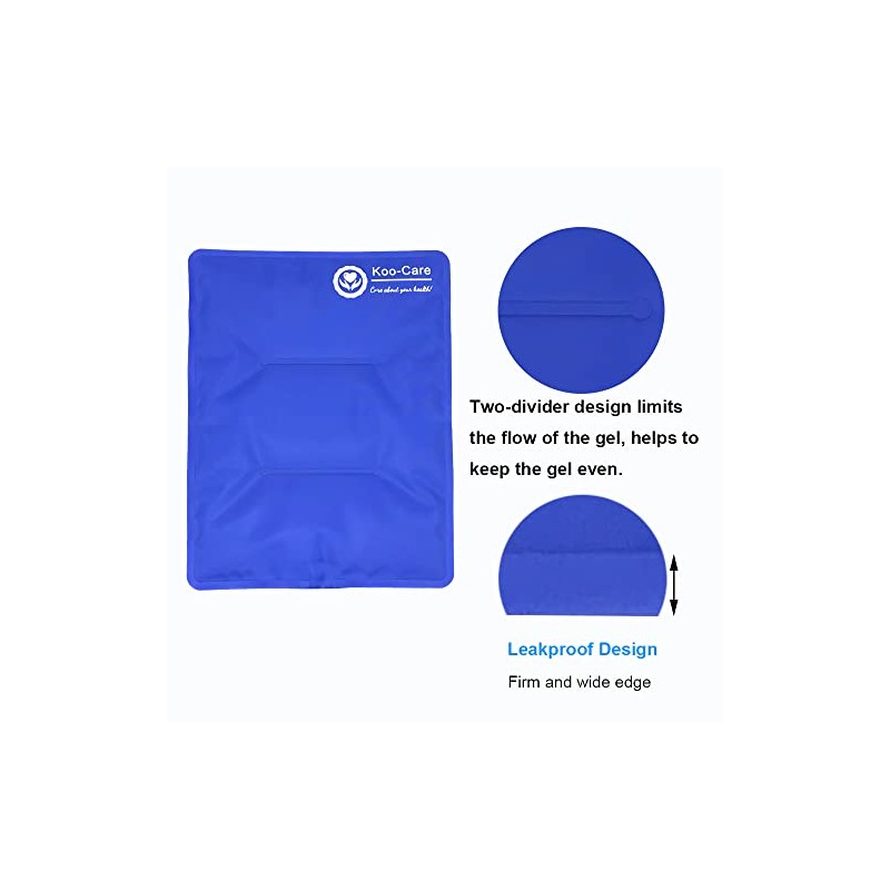 - Unique Design - The two-divider design of the gel pack can limit the flow of the gel partly and help to keep the gel in uniform distribution. As a result, the gel will not easily clump together unlike other large cold packs. Choosing sponge lined blue cloth and mesh cloth as the materials, the wrap feels very soft and comfortable, moreover, the ice/heat in the gel pack can go through and reach the skin and tissue easily.