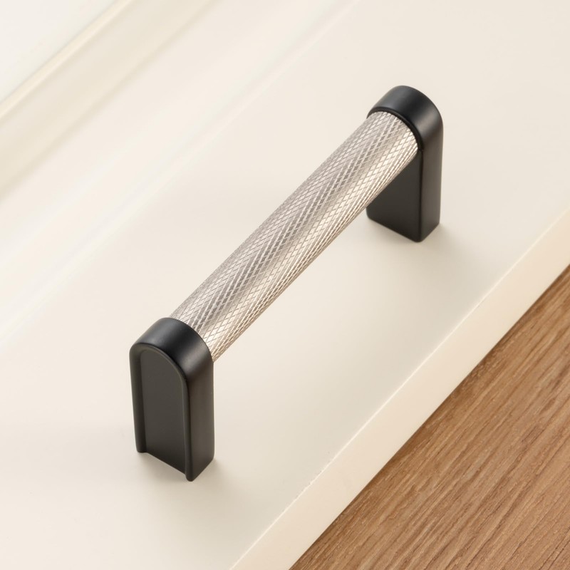 - Pack of 5 nickel and black high quality knurled 2 color cabinet pull handle, durable metal hardware.