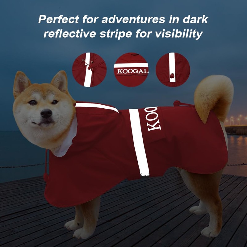 KOOGAL Hooded Pet Large Dog Raincoat Apparel Poncho Waterproof for Medium Large Sized for Dog Raincoat Clothes (Red, 3XL)