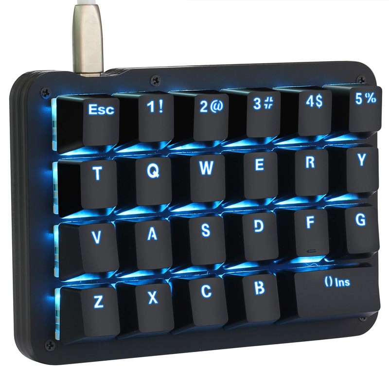 Koolertron 23-Key One-Handed Mechanical Keypad, Blue LED Backlit Portable Mini One-Handed Mechanical Gaming Keypad 23 Fully Programmable Keys