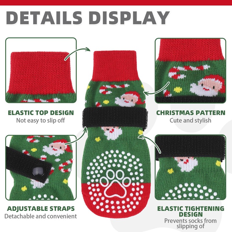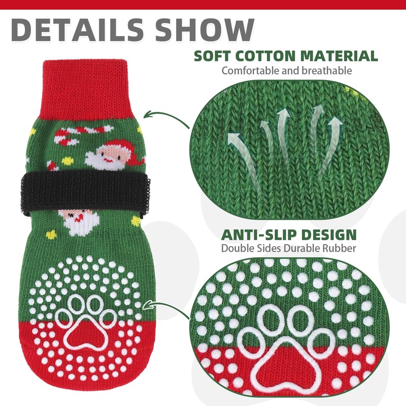 - SIZE M: Foot width 2.55 inches Sock length 6.3 inches Grip width 1.7 inches. Please make sure to measure your pet before purchase. Christmas patterns are full of Christmas atmosphere, not only can they be worn on holidays, but also on a daily basis, making them a great gift!