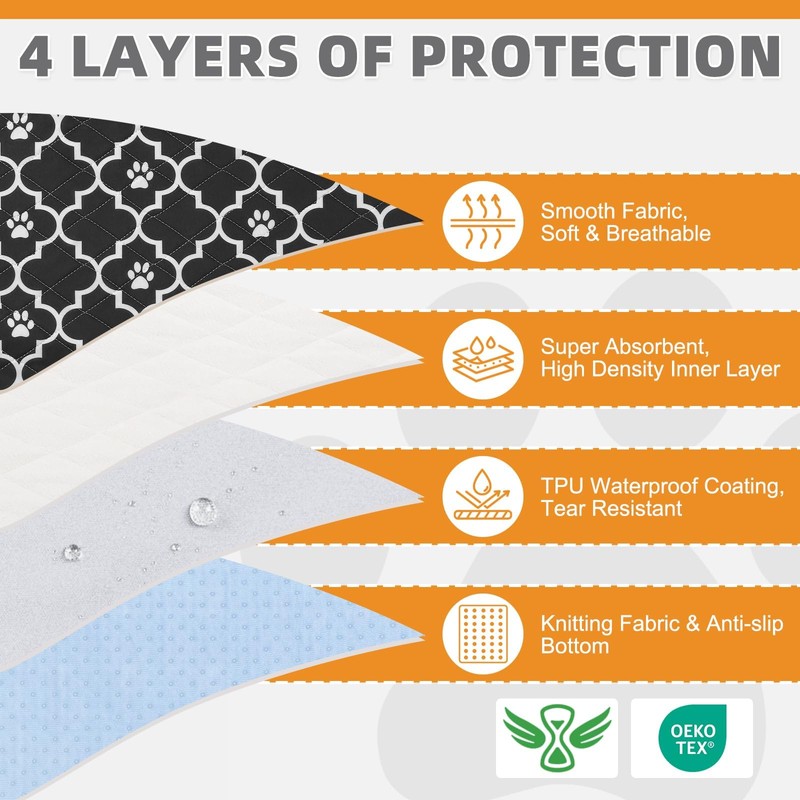 - SUITABLE FOR MULTIPLE OCCASIONS: It can be a wee wee pad for dogs, it can be a whelping pad for dogs, and of course, it also can be used as a puppy training pad. It can also be used when your pet is eating or drinking to keep the floor clean as a food mat. It can be put on the playpen, dog crate, home floors, bed, sofa, car seat, and other places to give all-around protection.