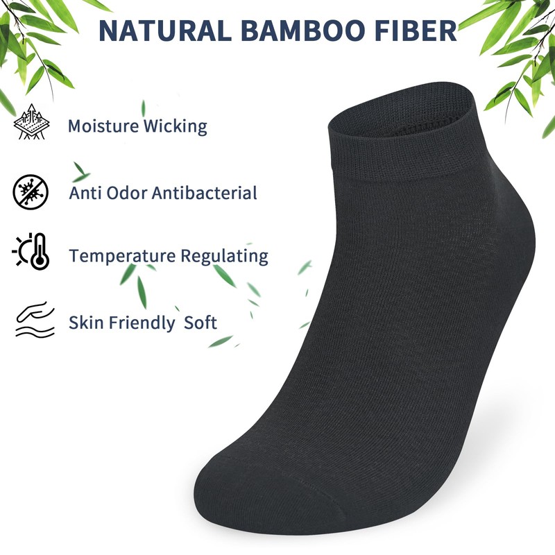 - Low-cut Bamboo Socks: Men womens Bamboo socks are made of 75% bamboo, 20% polyamide and 5% elastane. They are designed to be comfortable, breathable, cool and fit, providing extra comfort, support and durability. Very breathable, moisture-wicking and soft;