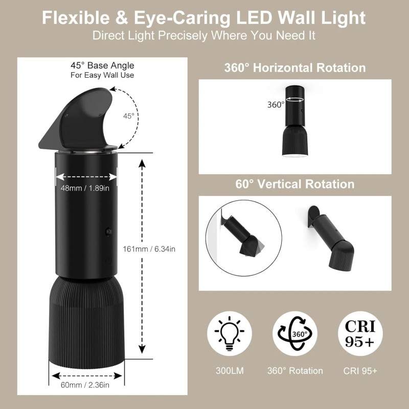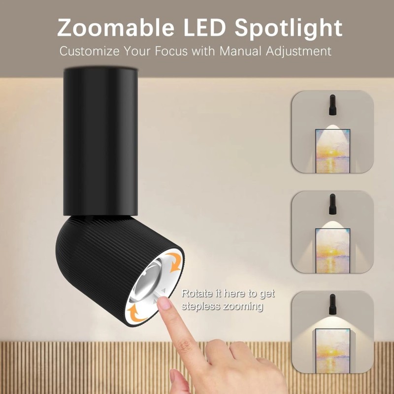 【Flexible Angle Adjustment】The indoor led spotlight head can be rotated 60° vertically, with excellent flexibility. The magnetic base design allows the entire lamp to rotate 360° horizontally, allowing the picture spotlight for wall to be directed precisely where you need it. In addition, you can easily remove it for charging or use it as a flashlight, emergency light, portable lamps, etc.