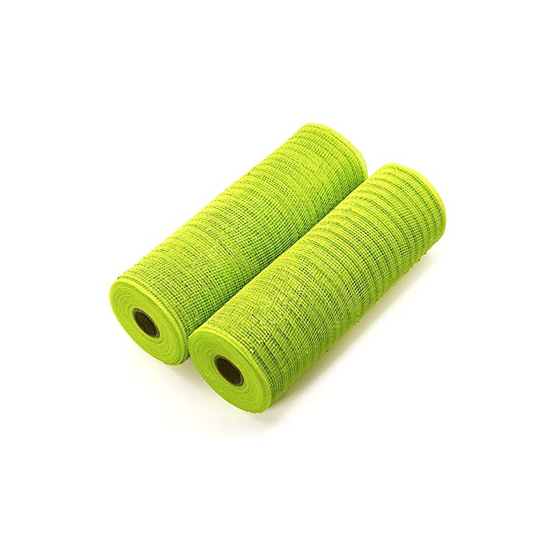 Koopi Poly Deco Mesh 10 inch x 10 Yards Each Roll, Set of 2 Lime Green Metallic Foil Poly Mesh Ribbons for Easter or Spring Wreaths, Swags, Craft, Party and Decorating Supplies- 2 Rolls