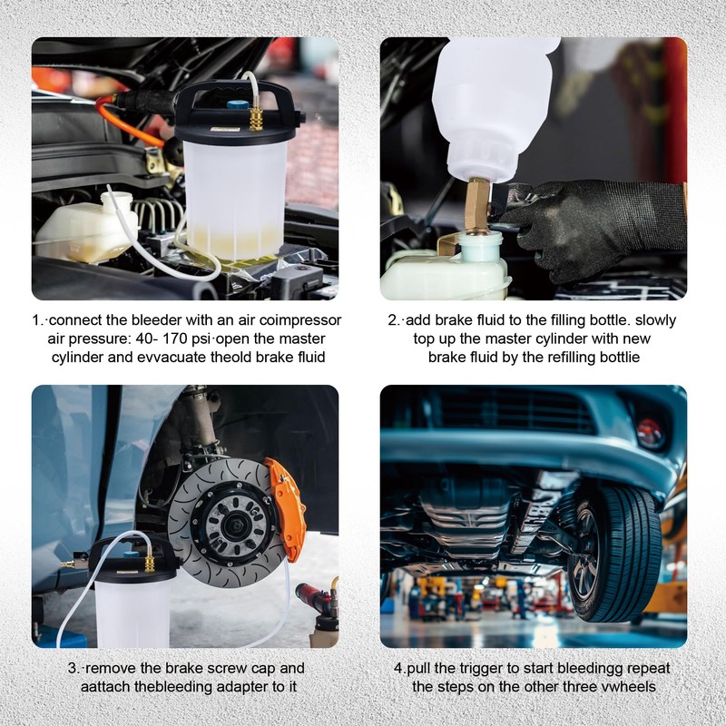 KOOPOOL 3L Vacuum Brake Bleeder Kit, Pneumatic Brake Fluid & Clutch Bleeding Extractor with 1L Refilling Bottle