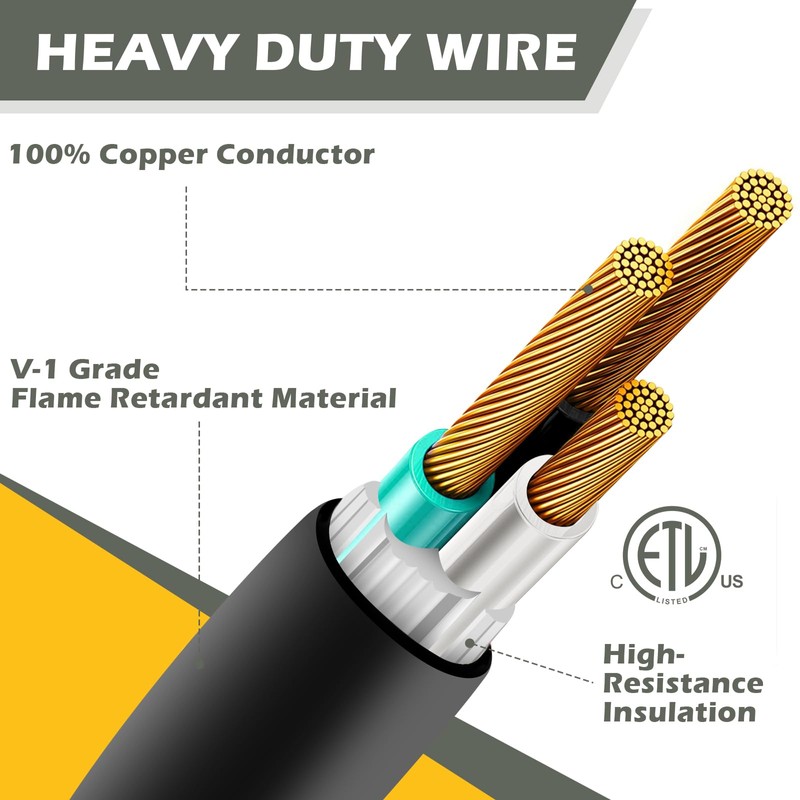 • SUPERIOR DURABILITY - Molded and manufactured with 100% pure copper with full 10 gauge wires ensure high conductivity. Covered by a durable STW jacket, coated in a tough heat resistant PVC sleeve that serves as protection against the outdoor elements, wear and tear.