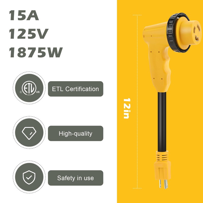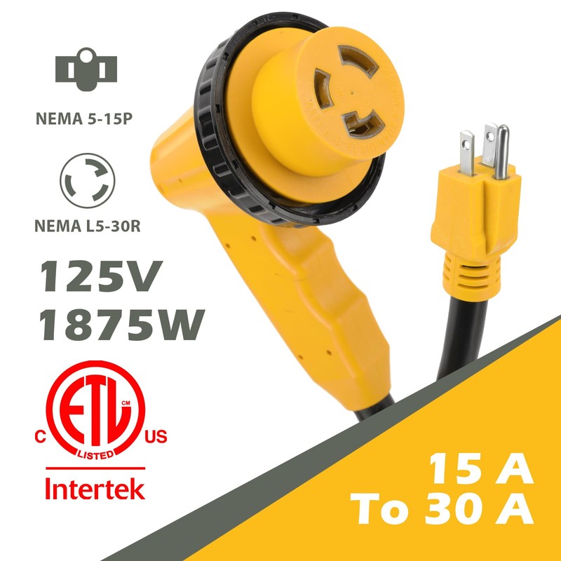 • Electrical Rating:15A (NEMA 5-15P) male to 30A (NEMA L5-30R) female heavy duty RV power adapter. Rated for 125V and 1875W Essential RV Accessories.