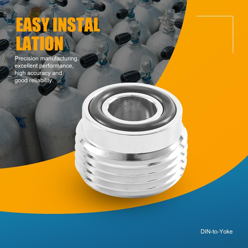 - Universal Compatibility: Equipped with a compatible O-ring, this adaptor guarantees a secure and leak-proof connection between your DIN tank valve and yoke-style regulators, enhancing safety and reliability under water.