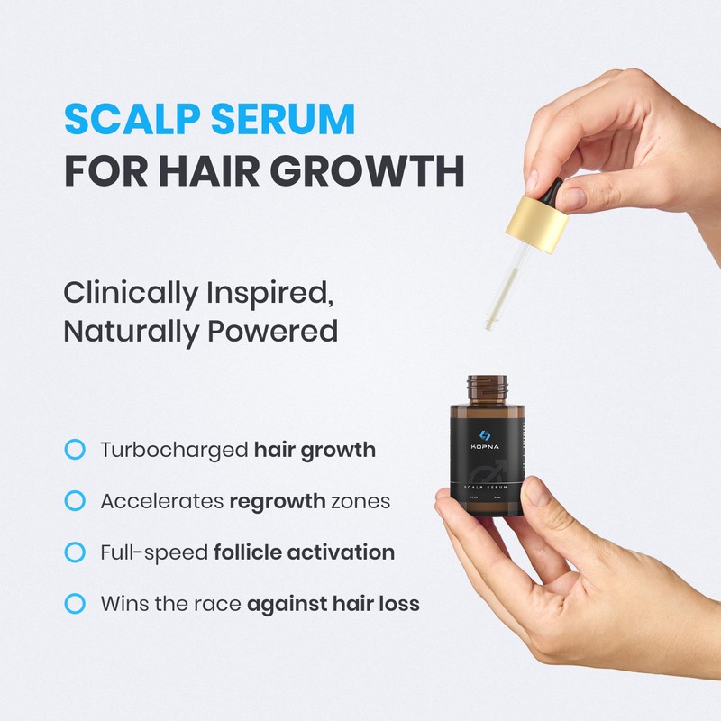 Kopna Hair Growth Serum for Men - Extra Strength Scalp Treatment with Biotin & Botanical Actives - Clinically Tested for Thicker, Fuller Hair - Lightweight, Non-Greasy Formula - 1 Fl Oz Bottle