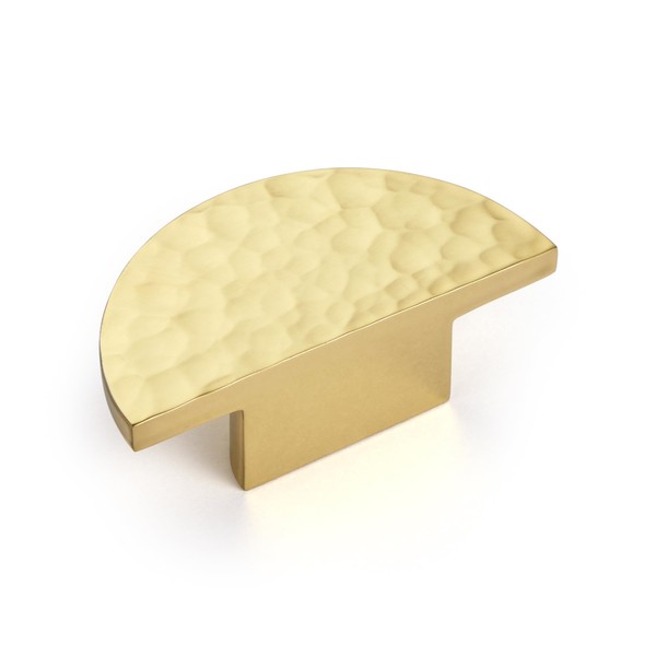 KOPPALIVE 2-Pack Solid Brass Cabinet Knobs, Semicircle Gold Drawer Knobs, Hammered Dresser Drawer Pulls Handles, Modern Furniture Hardware for Kitchen, Length 1-5/8 Inch
