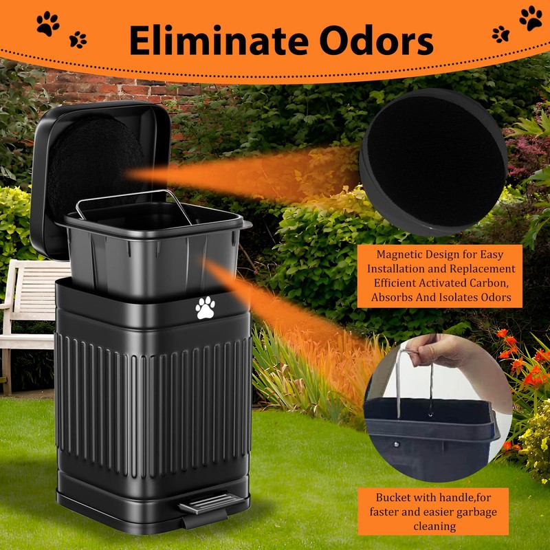 - Odor control: The dog poop trash can is equipped with a replaceable high-efficiency deodorizing filter pads that easily filter out odors;Additionally, the product features a sealed lid to block odors, keeping the air fresh