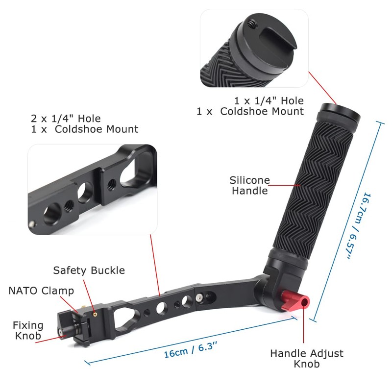 KOQINVIZ 360° Adjustable Handgrip Handle with NATO Clamp for DJI RS3 Pro/RS3 Mini/RS3/RS2/RSC2, Gimbal Sling Grip with Coldshoe 1/4" Holes Extension Mount