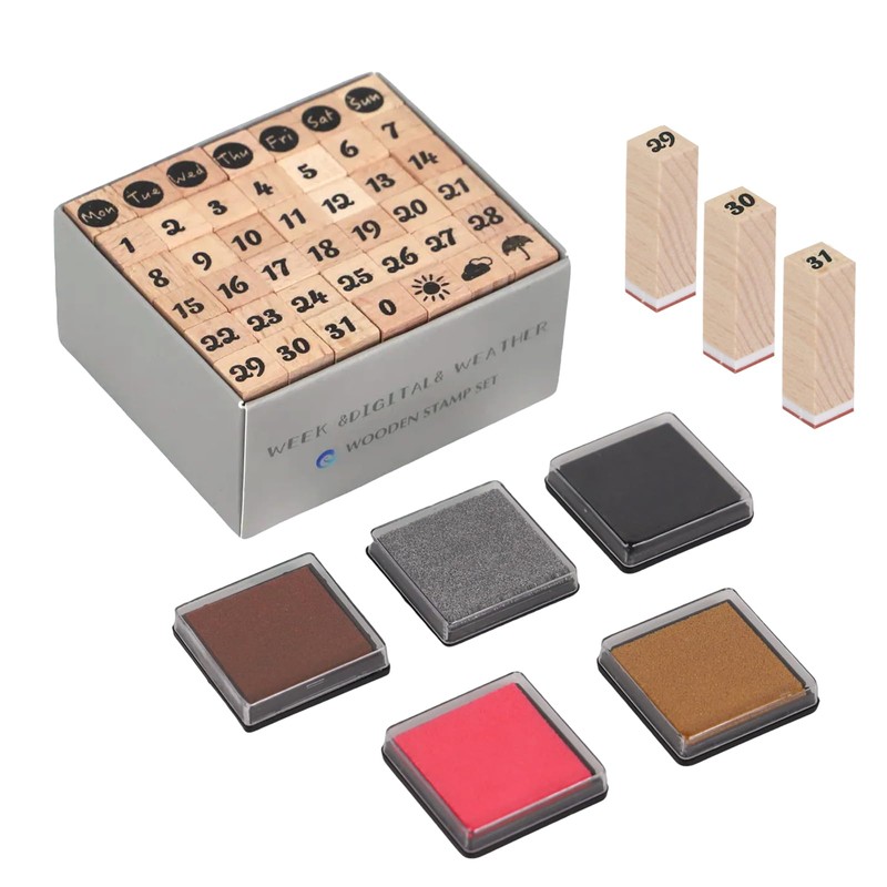 • Complete 42Pcs Crafting Kit: Package includes 42 symbols + 5 colors ink pad, all stored in a durable 2.9 x 2.6 x 1.4inch paper box. Each wooden stamp features 0.4*0.4inch imprint area for clear DIY projects.