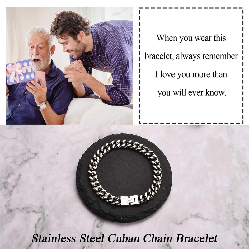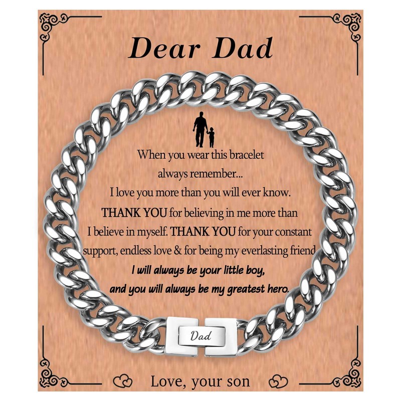- Dad Gifts: Comes with a meaningful "Dear Dad" message card and packaged in pretty gift box, cuban bracelet shows your sincere love to your dad, Perfect dad birthday gifts, fathers day gifts, christmas gifts, anniversary gifts from son. Gift it to him on a special day, he will definitely cherish for years to come