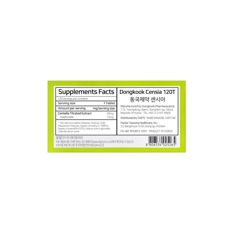 일반 Korea Dongkook Censia 동국제약 센시아 하지정맥류 개선 120T(4month) Centella asiatica for Better Blood Circulation 약국용