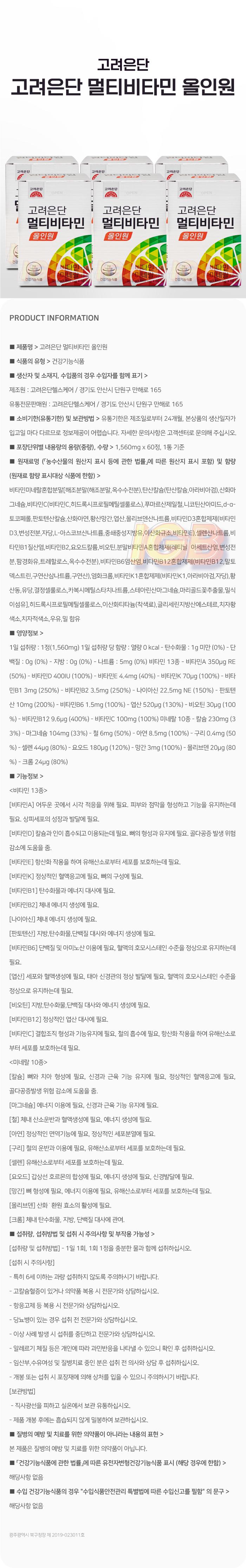 - 「건강기능식품에 관한 법률」에 따른 유전자변형건강기능식품 표시: 상세페이지 참조