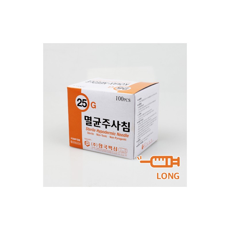 Korea Vaccine) Disposable needle 25G*38mm(1) Long / 100 pieces / 한국백신) 일회용주사침 25G*38mm(1) Long / 100개입