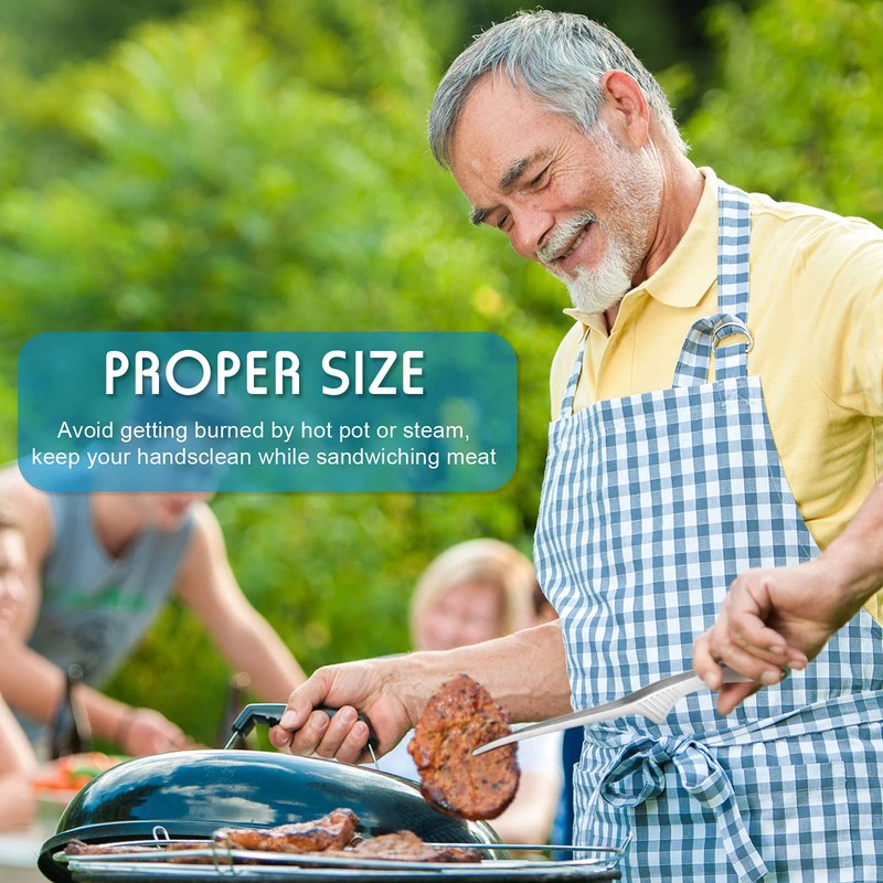 Stainless steel grill tongs are characterized by smooth surfaces, easily avoid food residues on them, can be easily washed by hand in warm water or by dishwashers, which saves you much time and effort.
