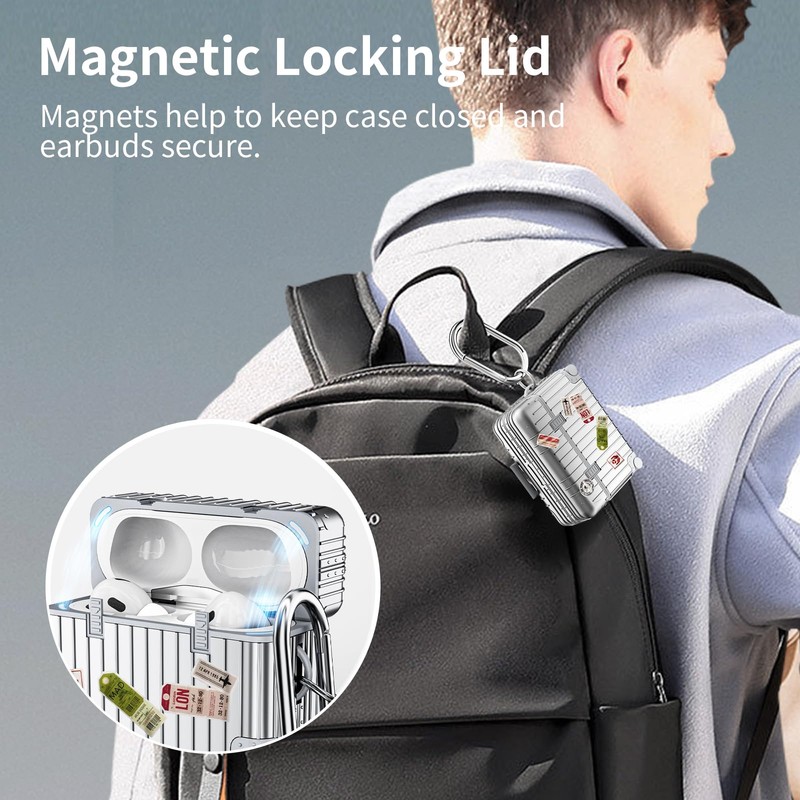 - What You Get1x Suitcase Case for Airpods Pro 2nd Generation/1st Generation, 1x Metal Carabiner, 1x Small Steel Ring, 2x DIY Stickers. Please note that AirPods Pro & AirPods Pro 2 Charging Case are NOT included.