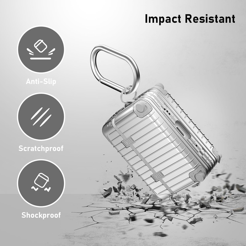 KOREDA KOREDA Compatible with AirPods Pro 2nd/1st Generation Case Cover, Cute Funny Suitcase Design Case for Airpods Pro 2nd/1st Gen, Fashion Protective Hard Case for Women Men with Keychain (Silver)