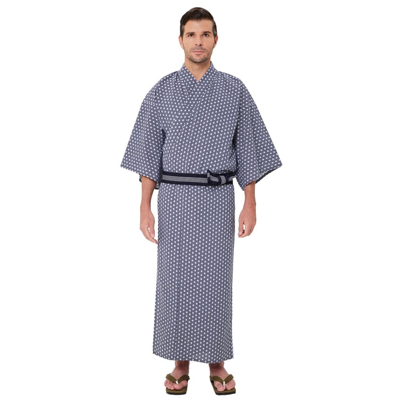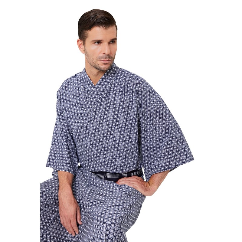 Koremono Mens Asanoha Yukata, Lightweight Summer Robe, 100% Cotton, Made in Japan (Wide Fit, US, Alpha, XX-Large, Big, Regular)