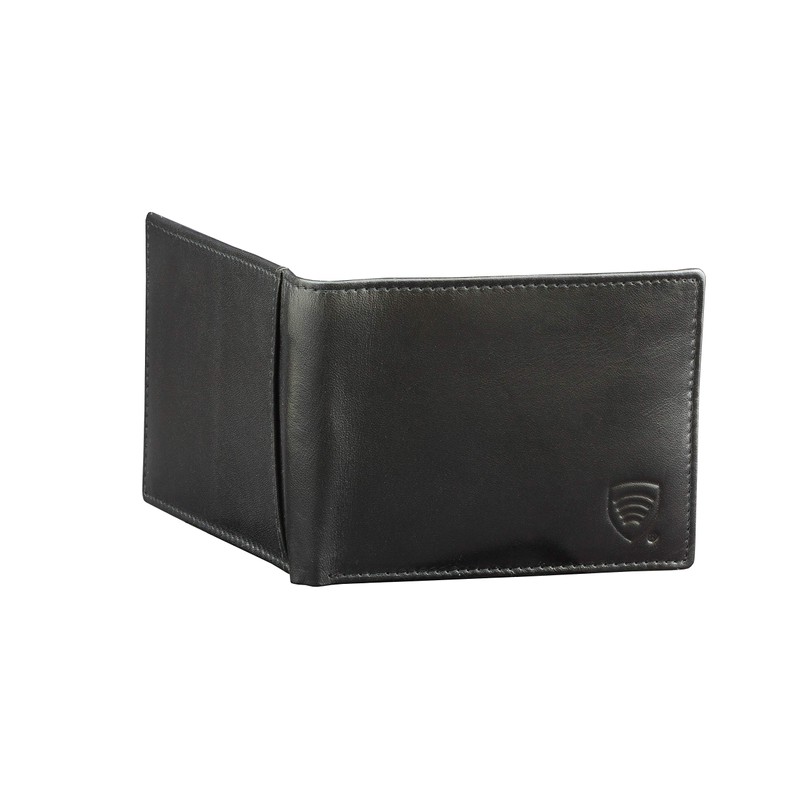 KORUMA® NFC/RFID Genuine Leather - SLIM Wallet - TAP&GO Feature - CARD CLASH solution - CERTIFIED PROTECTION - Shiny black colour (KUK-93SNBL)