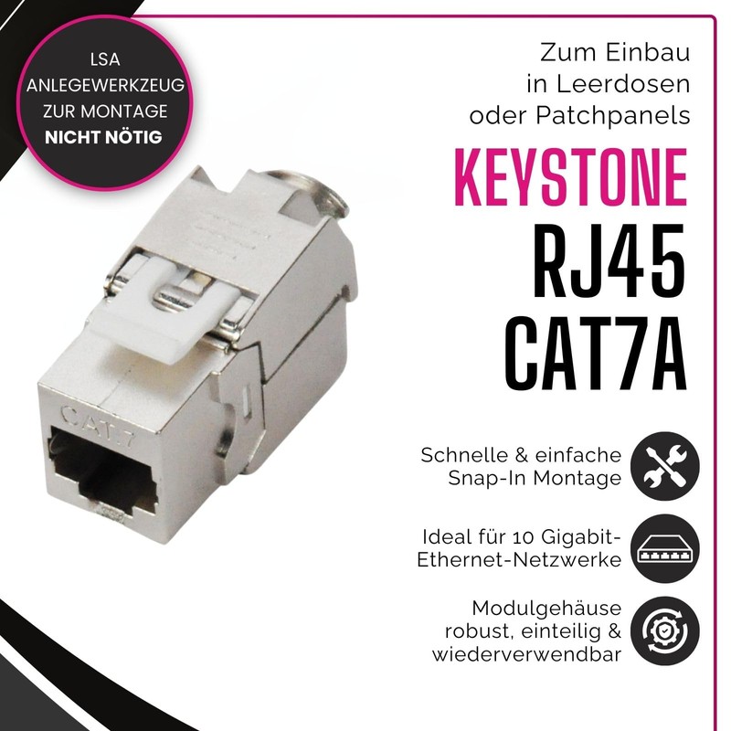 - Versatile: the keystone module with 360° shielding is ideal for installation in network empty boxes or patch panels and perfectly compatible with network extension cables of the categories CAT6a, CAT7, CAT7a and CAT8.