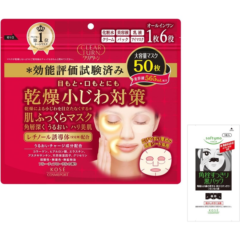 KOSE Clear Turn Skin Plump Mask 50 sheets with bonus Face Mask Wrinkle, Moisturizing 1) Large capacity 50 sheets (x 1)
