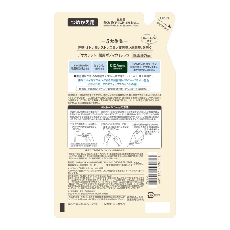 KOSE Deocat Medicated Body Wash, Odor, Skin Care, Refill Set of 2 (320 mL) x 2 Pieces, Bonus Included