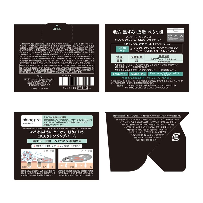 KOSE Softymo Clear Pro Cleansing Balm, CICA, Black, Blackhead Pores, Glide, 3.2 oz (90 g)