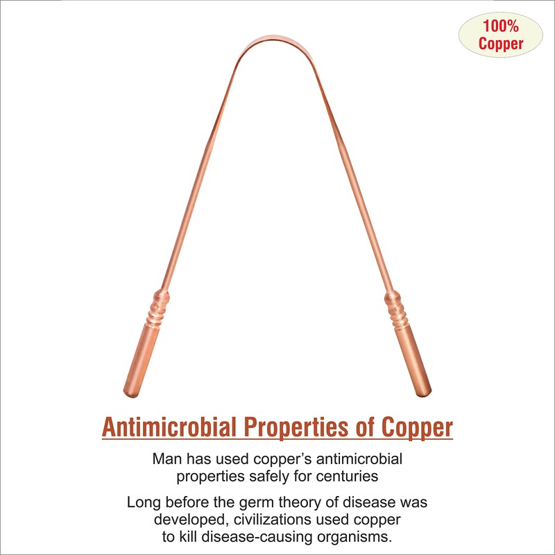 Ayurveda’s medicinal texts talk about tongue scrapers being made from pure, unalloyed metals, such as gold, silver, copper or tin. However, we now know copper is the only substance you should be using for your tongue scrapers. Copper as a metal has been known for its medicinal purposes for centuries. Even in ancient times, copper was recognized as a source of minerals and a cleansing agent. Copper tongue scrapers are far more effective than plastic scrapers or other metal scrapers because of copper natural properties.