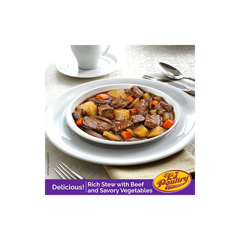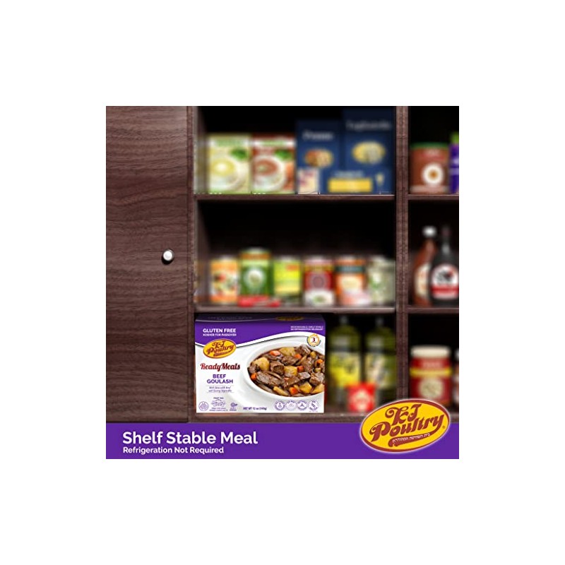INTRODUCING OUR KOSHER FOR PASSOVER MEALS so that you can enjoy our easy-to- cook homemade meals during our special holiday! We use the finest ingredients and meet the strictest kashrus standards possible so that you can enjoy the most delicious kosher meals without sacrificing healthy nutrition. This meal is perfect for those who really want to have a traditional Passover home, but might not have the time or the skills to prepare a traditional tasty Kosher meal for Passover. Now let’s get into the specifics. **Want to know exactly what you get in our Kosher for Passover Beef Goulash Meal?** A rich beef stew with the most succulent beef pieces and the most savory vegetables. Sounds like the description a fine restaurant would give to it, right? Well, it tastes as fine as it sounds. **And how big is this meal, you may ask?** Each single meal includes a single serving (serving size 12 oz.) and has 230 calories. **Alright… And what about the ways to heat it up?** Well, there are four ways you can do it (that we know of): 1) Microwave Oven: The faster option. It's warmed up and ready in about 2 or 3 minutes, depending on the microwave. 2) Boiling Water: Place the product as is in boiling water, heat for approximately 7 - 10 minutes. 3) Hot Plate: May be heated on a Hot Plate. *Heat setting should not exceed 250°F. 4) Stove Top Blech: May be heated on a Shabbos Stove Top Blech. **Do you now want to know who’s behind these mouthwatering meals?** We are KJ Poultry… Nice to meet you! Our kosher processing plant is in New York State, Mid-Hudson Valley Region, we’ve grown into the largest kosher poultry plant on the Eastern Seaboard and we’re a family of 250 workers! Ready to meet us? Ready to taste our meals? _KJ Poultry Ready Meals!_