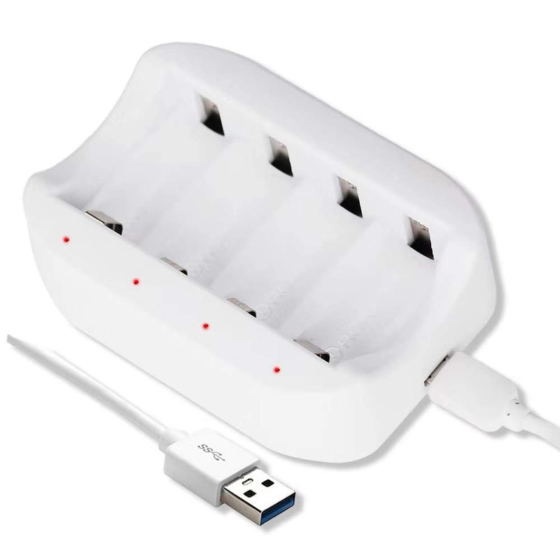 - [Super Charging Technology] This Arlo Charger with 4 slots Independent charging, protect and fully charge Each arlo rechargeable Battery. **USB 5V input Charging, world-wide using, suggest 5V-2A output adaptor. ** presiced MCU control, red lights-charging, Blue lights-Fully Charged. **Easy using,insert correctly as batteries and charger directed + -, Do not insert reversed.