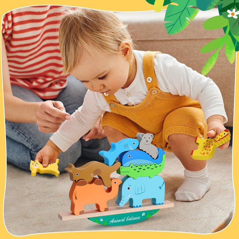 - 🦁 10 bloques de animales + tarjetas de reto Este set incluye 10 bloques de madera con formas de animales (jirafa, cocodrilo, hipopótamo, elefante, ratón, entre otros) y 10 tarjetas de desafío de doble cara con tres niveles de dificultad. ¡Un juego ideal para el desarrollo temprano y la diversión sin pantallas!