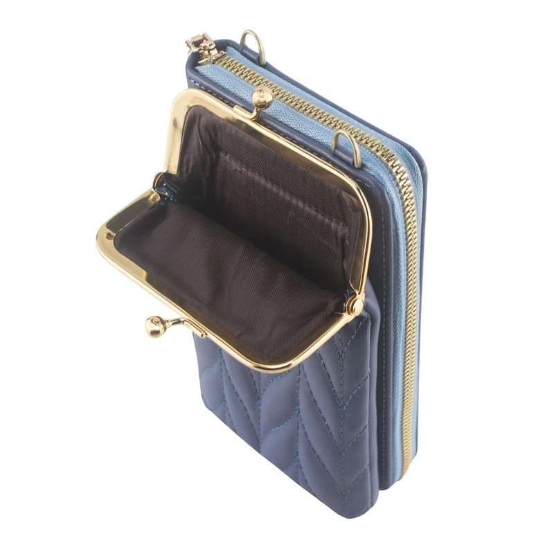 Kososuru PU Leather Small Crossbody Phone Bag for Women,Cell Phone Wallet Kiss Lock Shoulder Bag, Zipper Cash Pocket Purse with Credit Card Slots (Blue)