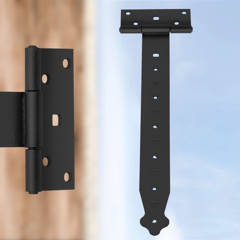 - Resistant: The T-hinges are made from high-quality metal. Our gate hinges are resistant to external factors. Our shutter hinges are galvanised in order to increase quality. The T-hinge is available in gold. The galvanised surface ensures our shutter hinges are rust-free. The hinge consists of two wings and a pin. Moves very easily.