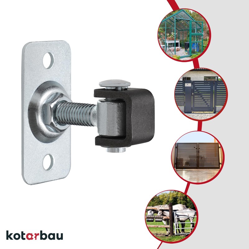 Discover the high-quality KOTARBAU gate hinge adjustable door hinges M12 for screwing. Made from durable S235JR steel and electro galvanized, these adjustable door hinges provide a reliable and durable solution for heavy gates. With an adjustable gate rod M16 and an adjustable gate clamp, these gate fittings are perfect for garden gates and other heavy gates. Don't miss the chance to improve your goals with our high quality gate hinges.
