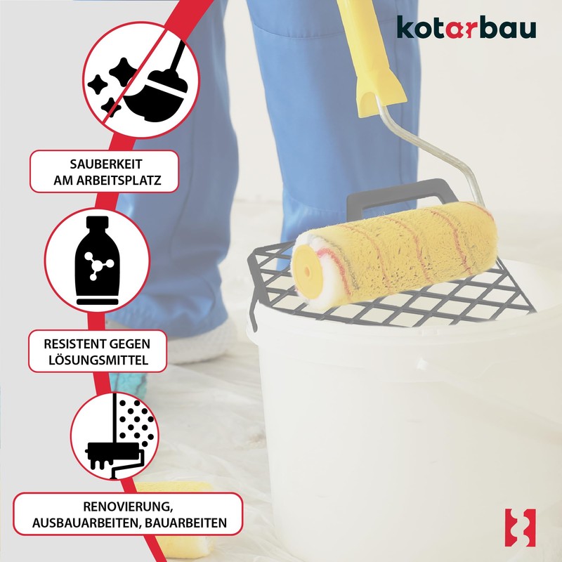 • Versatility - The KOTARBAU draining grid is used for spreading paint during renovation, renovation and construction work. Our product helps you maintain cleanliness around your workplace. It works well in many professional and hobby work.