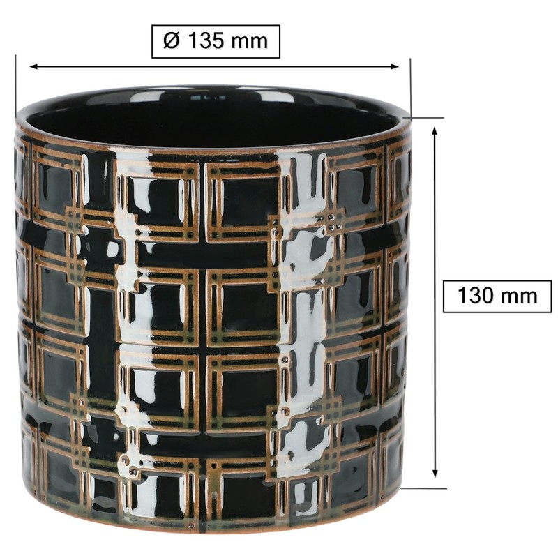 - The set of flower pots made of ceramic for flowers or for use as a box. A set of 6 plant pots with a diameter of 135 mm, each decorated with a different pattern. They shine beautifully and come in a variety of colors, so you can safely match them to your decor. Plant flowers or use the planter to store jewellery or pens. They will present themselves excellently in every role.
