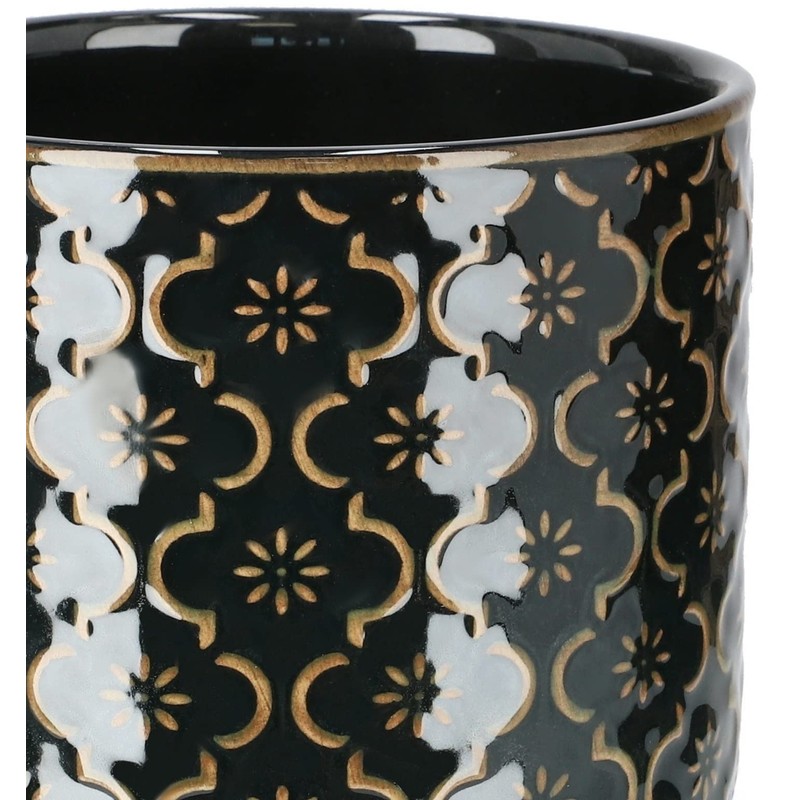- An extraordinary interior is an interior that is perfectly designed down to the smallest detail. The set of ceramic flower pots with decoration is an accessory that looks wonderful on a table, windowsill or TV cabinet. The matching contrasting colour of the pots highlights the details and highlights the design of the interior in industrial, glamour or even folklore style.