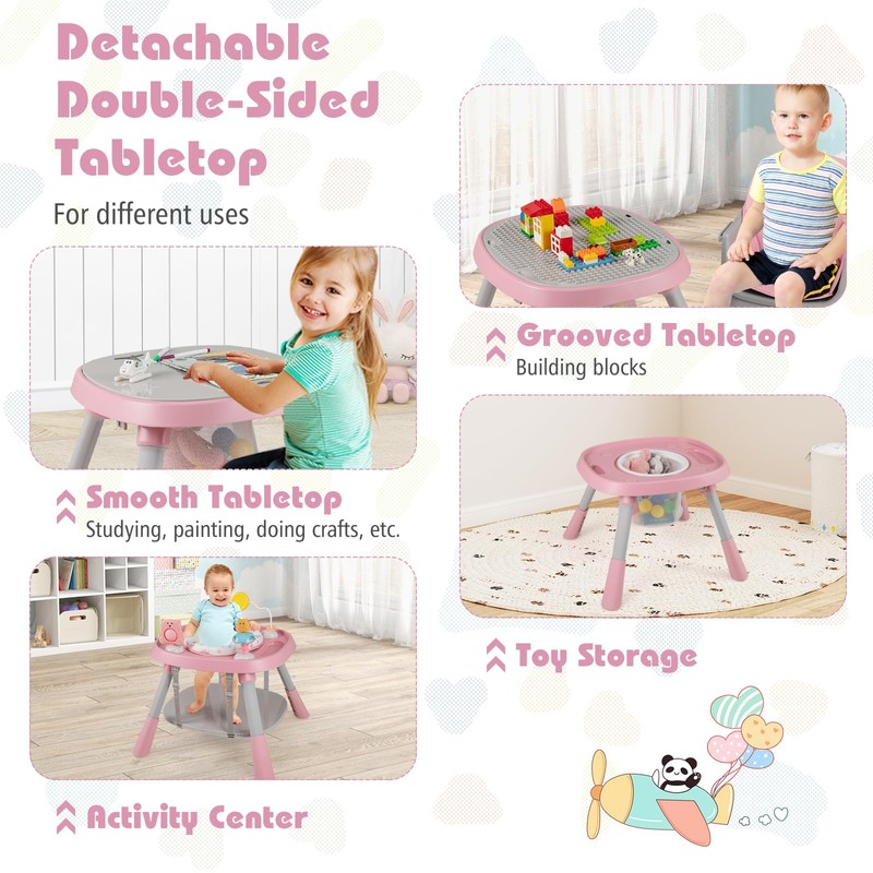 KOTEK 16 in 1 Convertible High Chair, Baby Highchair & Activity Center with Toys, Booster Seat, Building Block Table, Toddler Chair with 5-Point Harness, Removable Tray & Cushion (Pink)
