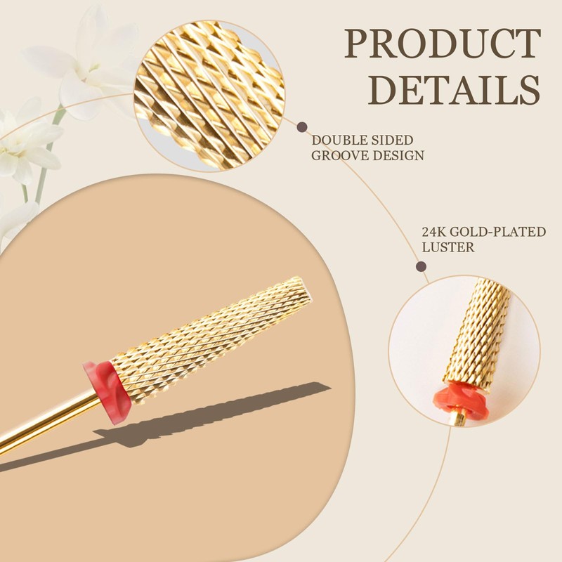 Kotkiddy® Super Long 5 in 1 Nail Drill Bits 24mm Carbide Tungsten Bits Advanced Quick Removal for Manicure Pedicure Cuticle Gel Polishing (Coarse, Gold)