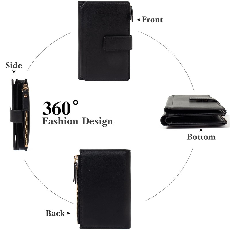 - RFID PROTECTION: Advanced RFID blocking technology safeguards your credit cards and personal information from unauthorized scanning and identity theft,and with 16 card case,cash compartment, zipper pocket.