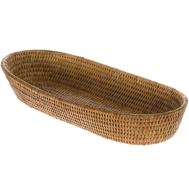KOUBOO La Jolla Bread Basket | Woven Rattan Basket for Bread, Fruit, & Kitchen Storage | Boho Decor, Food Baskets, Snack Tray, Home Organizer, Honey Brown, Large