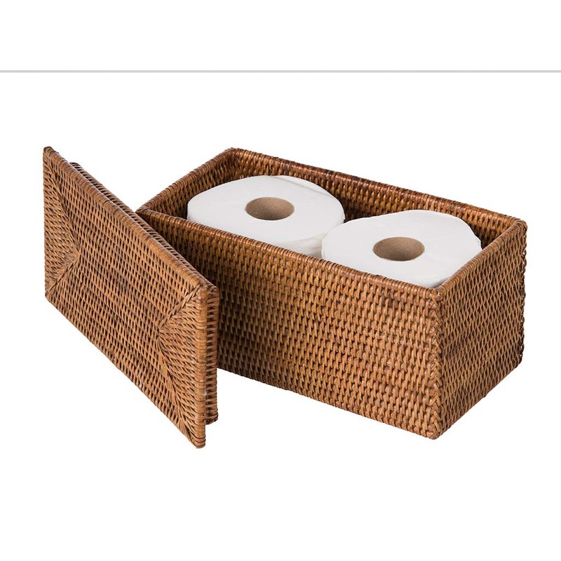 Kouboo La Jolla Rectangular Rattan Box, Honey-Brown Toilet Roll Storage Basket