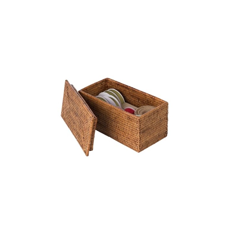 KOUBOO La Jolla Rectangular Rattan Box, Honey-Brown Toilet Roll Storage Basket