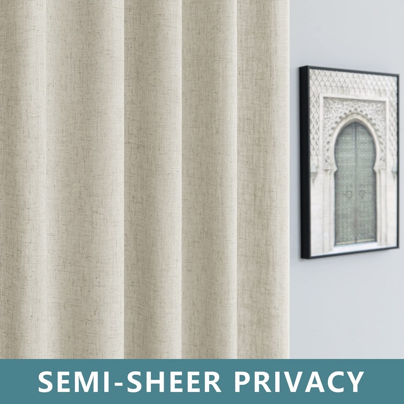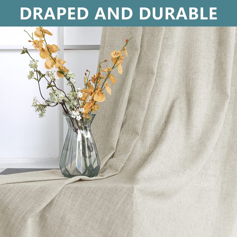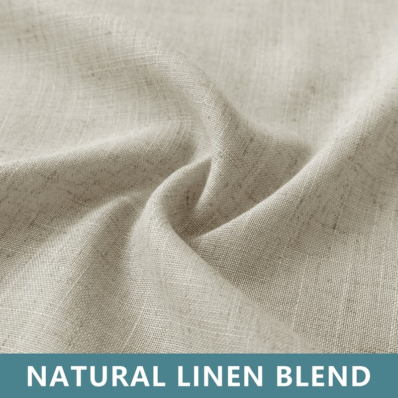 - Rich Linen Blend Fabric: 20% flax linen is blended in the polyester curtain panels. Compared to 100% linen fabric, the polyester softens linen and helps linen to wash better, wrinkle less, and retain color-fastness; the linen keeps the curtains light and airy which allows the curtains to flow nicely in a subtle summer breeze without any stuffy feeling.